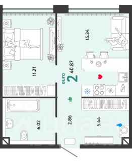 Предлагается евро-двушка в 7-м корпусе с отделкой от застройщика в стиле SAND.