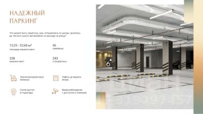 Так же за отдельную плату есть Машиноместо в подземном паркинге (13.3 м2, номер 307, рядом со входом в паркинг).