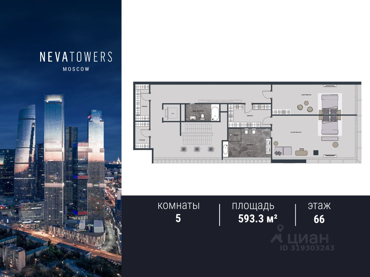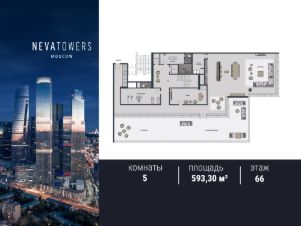 Площадь — 593,3 м², 66 этаж, Окна выходят на три стороны света.