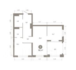 Квартира с кухней-гостиной и двумя спальнями в квартале "МОНС". Особенности планировки: тёплая лоджия, разнесённые спальни, предчистовая отделка, мастер-спальня.