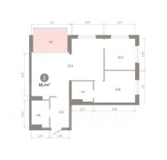 Квартира с кухней-гостиной и двумя спальнями в квартале "МОНС". Особенности планировки: разнесённые спальни, предчистовая отделка, мастер-спальня, балкон.