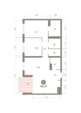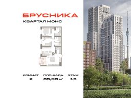 Квартира с кухней-гостиной и двумя спальнями в квартале "МОНС". Особенности планировки: предчистовая отделка, мастер-спальня, балкон.