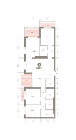 Квартира с кухней-гостиной и тремя спальнями в квартале "МОНС". Особенности планировки: второй санузел, гардеробная, окна в пол, без отделки, разнесённые спальни, мастер-спальня, терраса, балкон, терраса на крыше.