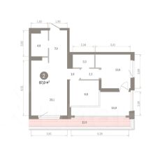 Квартира с кухней-гостиной и двумя спальнями в квартале "МОНС". Особенности планировки: окна на две стороны, второй санузел, гардеробная, без отделки, тёплая лоджия, лоджия, разнесённые спальни, мастер-спальня, терраса, постирочная, терраса на крыше.