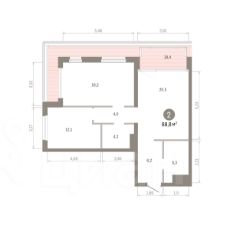 Квартира с кухней-гостиной и двумя спальнями в квартале "МОНС". Особенности планировки: второй санузел, без отделки, терраса, терраса на крыше.