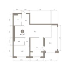 Квартира с кухней-гостиной и двумя спальнями в квартале "МОНС". Особенности планировки: второй санузел, тёплая лоджия, разнесённые спальни, предчистовая отделка.