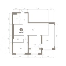 Квартира с кухней-гостиной и двумя спальнями в квартале "МОНС". Особенности планировки: второй санузел, тёплая лоджия, разнесённые спальни, предчистовая отделка.