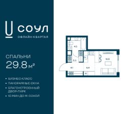 Продается студия номер 537 общей площадью 29.8 кв.м. на 7-м этаже 29 этажного дома, Корпус 5. Без отделки.