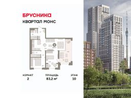 Квартал "МОНС" пронизан атмосферой локации, её энергетикой. Она воплощена в общей композиции, чистоте её форм, в графичных и динамичных силуэтных линиях. Пять домов от 2 до 45 этажеи поддерживают идею монументальности и одновременной лёгкости, но при этом у каждого из них сформировался свой характер. "Игра" с разными высотами, текстурой и формой фасадов позволила запустить в квартиры и дворы больше света, сделать пространства между домами проницаемыми и воздушными. Застройщик — компания Брусника.