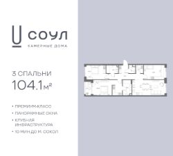 Продается 3-к. квартира номер 721 общей площадью 104.1 кв.м. на 2-м этаже 7 этажного дома, корпус UNIQUE (премиум-класс). Без отделки.