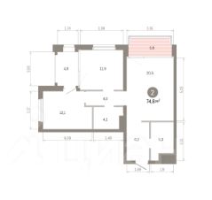 Квартира с кухней-гостиной и двумя спальнями в квартале "МОНС". Особенности планировки: окна на две стороны, второй санузел, вид во двор, тёплая лоджия, предчистовая отделка, балкон.