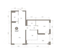 Квартира с кухней-гостиной и двумя спальнями в квартале "МОНС". Особенности планировки: второй санузел, тёплая лоджия, разнесённые спальни, предчистовая отделка.