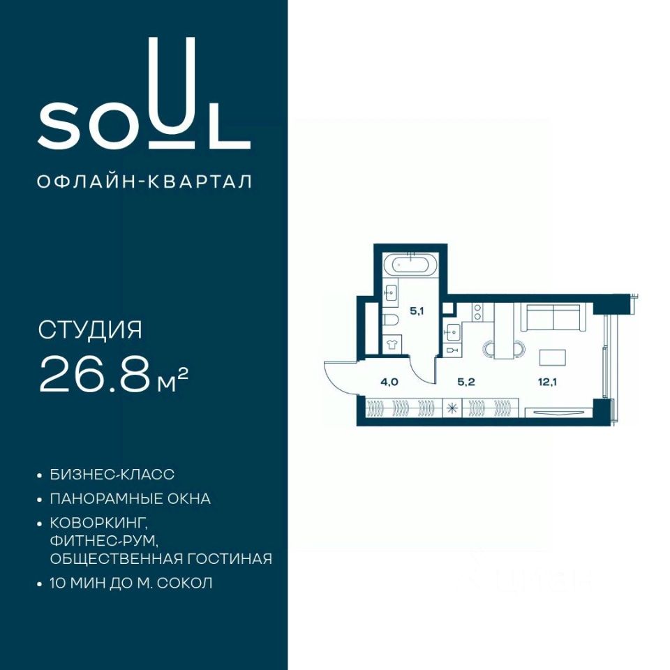 Продается студия номер 121 общей площадью 26.8 кв.м. на 14-м этаже 25 этажного дома, Корпус 3. С отделкой White Box Max.