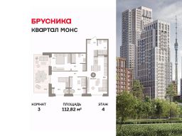 Квартира с кухней-гостиной и тремя спальнями в квартале "МОНС". Особенности планировки: второй санузел, окна в пол, без отделки, панорамное остекление, терраса на крыше.