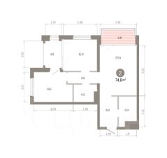 Квартира с кухней-гостиной и двумя спальнями в квартале "МОНС". Особенности планировки: второй санузел, тёплая лоджия, предчистовая отделка, балкон.