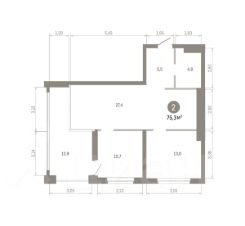 Квартира с кухней-гостиной и двумя спальнями в квартале "МОНС". Особенности планировки: тёплая лоджия, разнесённые спальни, предчистовая отделка.
