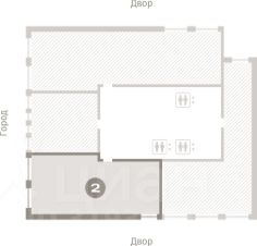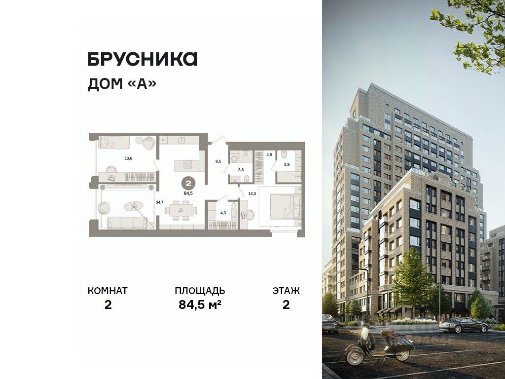 Квартира с кухней-гостиной и двумя спальнями в Доме "А". Особенности планировки: окна на две стороны, гардеробная, без отделки, вид во двор, разнесённые спальни, мастер-спальня, постирочная.