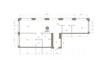 Квартира с кухней-гостиной и двумя спальнями в Доме "А". Особенности планировки: окно в коридоре, гардеробная, без отделки, вид во двор, разнесённые спальни, мастер-спальня, постирочная.