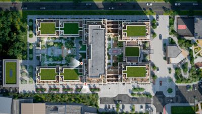 На эксплуатируемых кровлях запроектированы зелёные пространства. В инфраструктуру проекта войдут два павильона с кафетерием и детским клубом, фитнес-студия, ресторан и винотека.