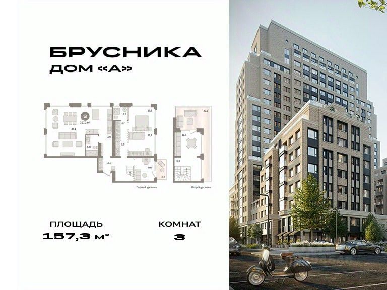 Двухуровневая квартира с кухней-гостиной и тремя спальнями в Доме "А". Особенности планировки: окно в коридоре, гардеробная, окно в санузле, без отделки, рабочий кабинет, двухуровневая, вид во двор, свободная планировка, мастер-спальня, терраса, постирочная, балкон, терраса на крыше.