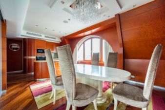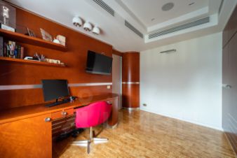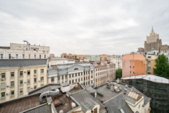 В самом центре Москвы, в окружении старинных особняков, музеев и театров и в шаговой доступности от Старого Арбата, предлагается шикарная трехсторонняя квартира с камином в элитном клубном комплексе "Староарбатский Дом".