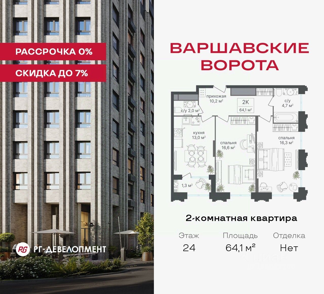 Продаётся 2-комнатная квартира 64,1 кв.м. в МФК "Варшавские ворота" на 24-м этаже 30 этажного дома. МФК "Варшавские ворота" — это точка баланса между природой и городом, стилем и функциональностью, жизнью сегодня и устойчивым будущим.