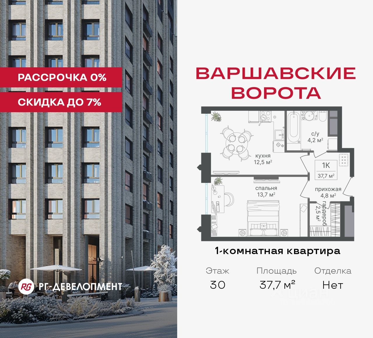 Рассрочка 0% + скидка 5%. Первый платёж 50% при ДДУ, второй 50% — через 12 мес. до ввода ЖК.