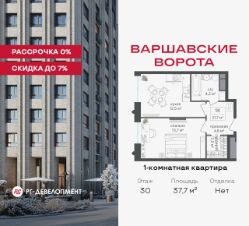 Продаётся 1-комнатная квартира 37.7 кв.м. в МФК "Варшавские ворота" на 30-м этаже 30 этажного дома. МФК "Варшавские ворота" — это точка баланса между природой и городом, стилем и функциональностью, жизнью сегодня и устойчивым будущим.