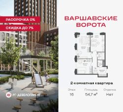Продаётся 2-комнатная квартира 54,7 кв.м. в МФК "Варшавские ворота" на 16-м этаже 30 этажного дома. МФК "Варшавские ворота" — это точка баланса между природой и городом, стилем и функциональностью, жизнью сегодня и устойчивым будущим.