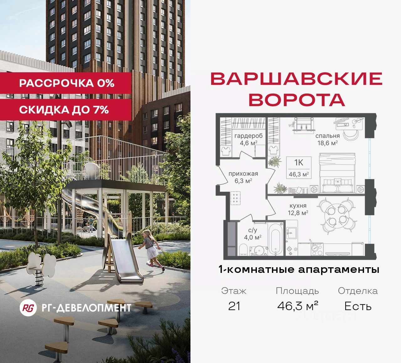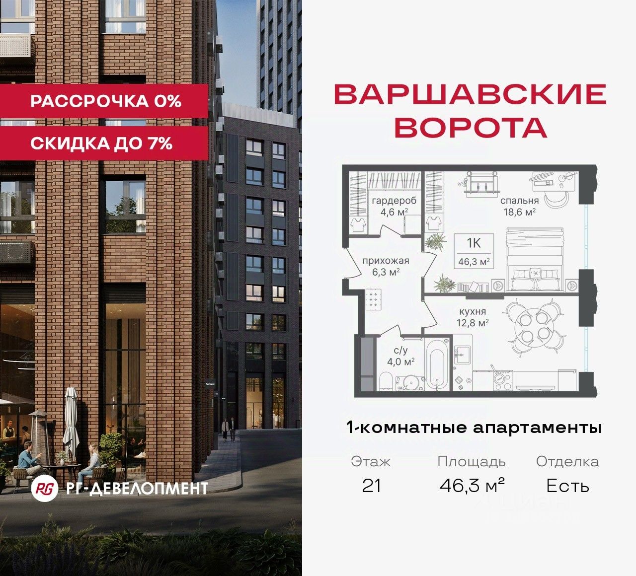 Продаются 1-комнатные апартаменты 46,3 кв.м. в МФК "Варшавские ворота" на 21-м этаже 30 этажного дома. МФК "Варшавские ворота" — это проект, в котором учтен широкий спектр требований: от транспортной доступности и развитой инфраструктуры до архитектурной выразительности и экологического окружения.