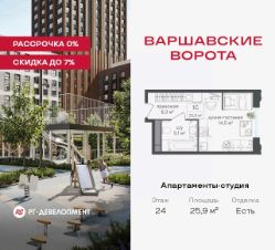 Продаются Апартаменты-студия 25,9 кв.м. в МФК "Варшавские ворота" на 24-м этаже 30 этажного дома. МФК "Варшавские ворота" — это проект, в котором учтен широкий спектр требований: от транспортной доступности и развитой инфраструктуры до архитектурной выразительности и экологического окружения.