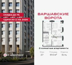 Продаются 2-комнатные апартаменты 61.0 кв.м. в МФК "Варшавские ворота" на 27-м этаже 30 этажного дома. МФК "Варшавские ворота" — это точка баланса между природой и городом, стилем и функциональностью, жизнью сегодня и устойчивым будущим.