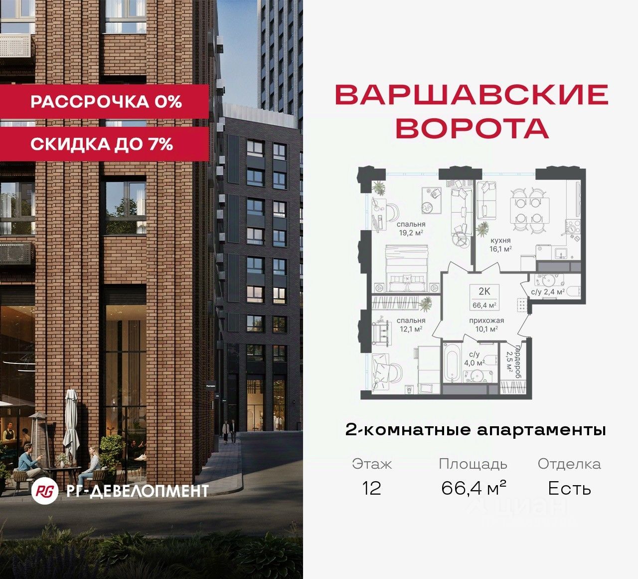 Продаются 2-комнатные апартаменты 66,4 кв.м. в МФК "Варшавские ворота" на 12-м этаже 30 этажного дома. МФК "Варшавские ворота" — это проект, в котором учтен широкий спектр требований: от транспортной доступности и развитой инфраструктуры до архитектурной выразительности и экологического окружения.