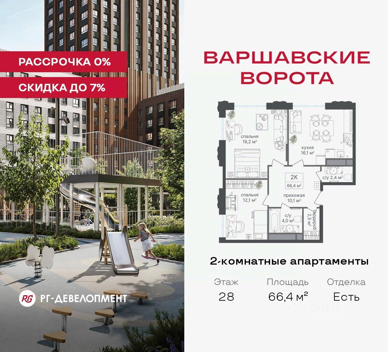 Продаются 2-комнатные апартаменты 66,4 кв.м. в МФК "Варшавские ворота" на 28-м этаже 30 этажного дома. МФК "Варшавские ворота" — это проект, в котором учтен широкий спектр требований: от транспортной доступности и развитой инфраструктуры до архитектурной выразительности и экологического окружения.