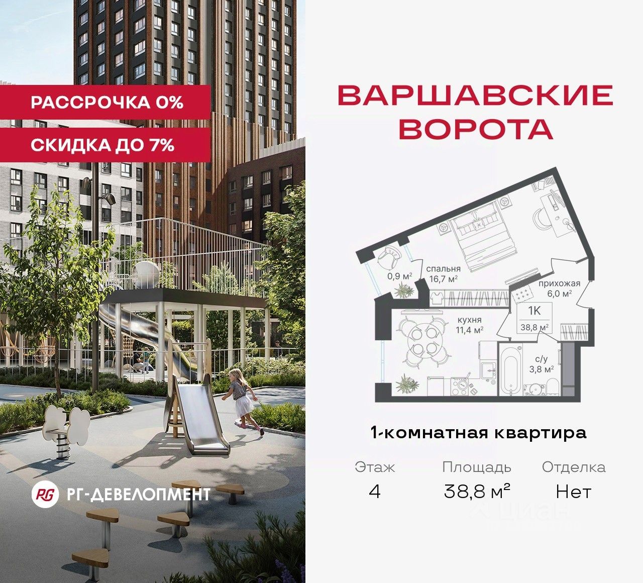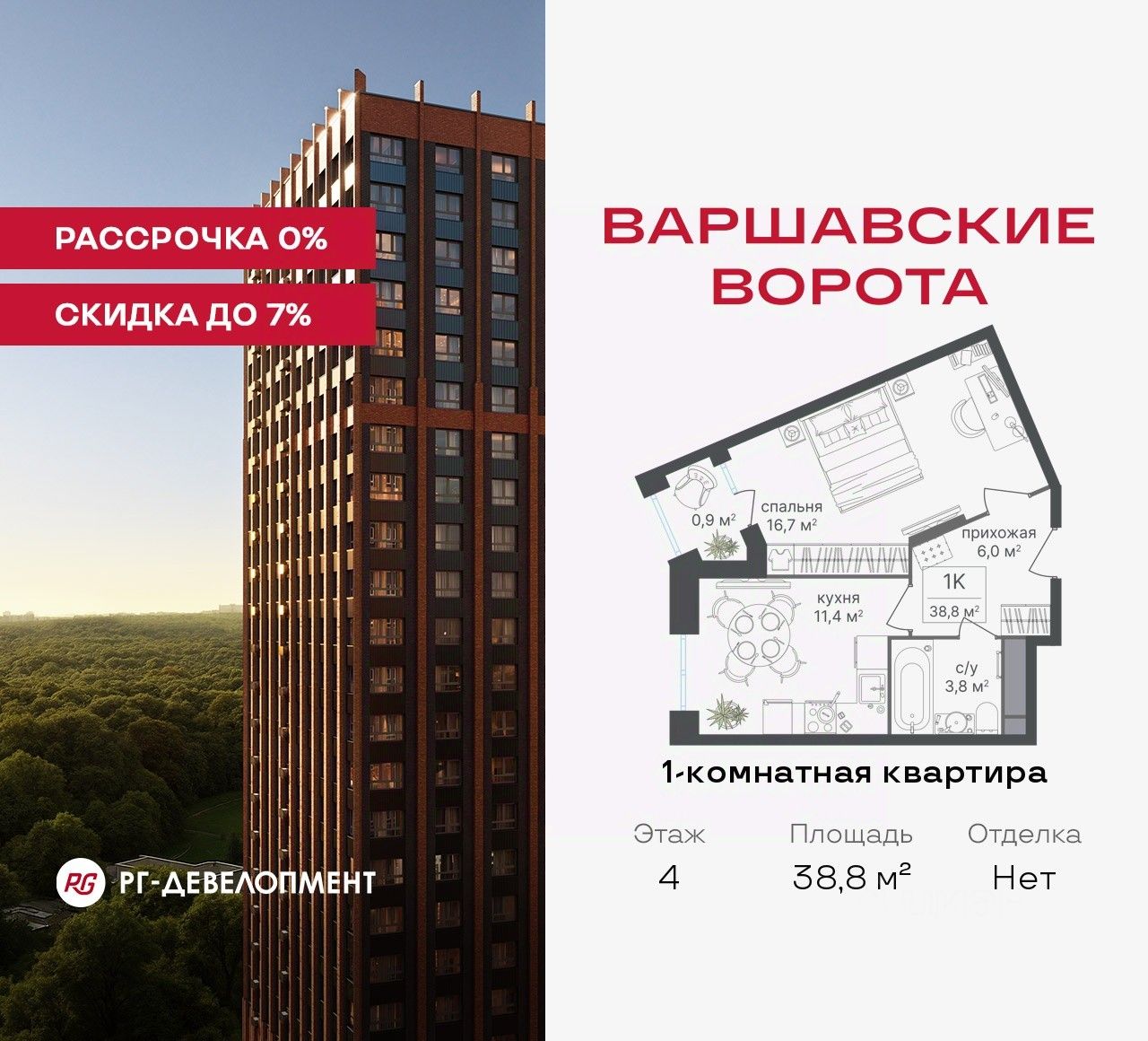 Рассрочка 0% + скидка 5%. Первый платёж 50% при ДДУ, второй 50% — через 12 мес. до ввода ЖК.