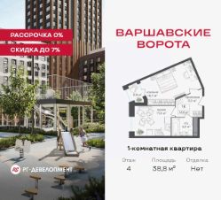Продаётся 1-комнатная квартира 38,8 кв.м. в МФК "Варшавские ворота" на 4-м этаже 8 этажного дома. МФК "Варшавские ворота" — это точка баланса между природой и городом, стилем и функциональностью, жизнью сегодня и устойчивым будущим.
