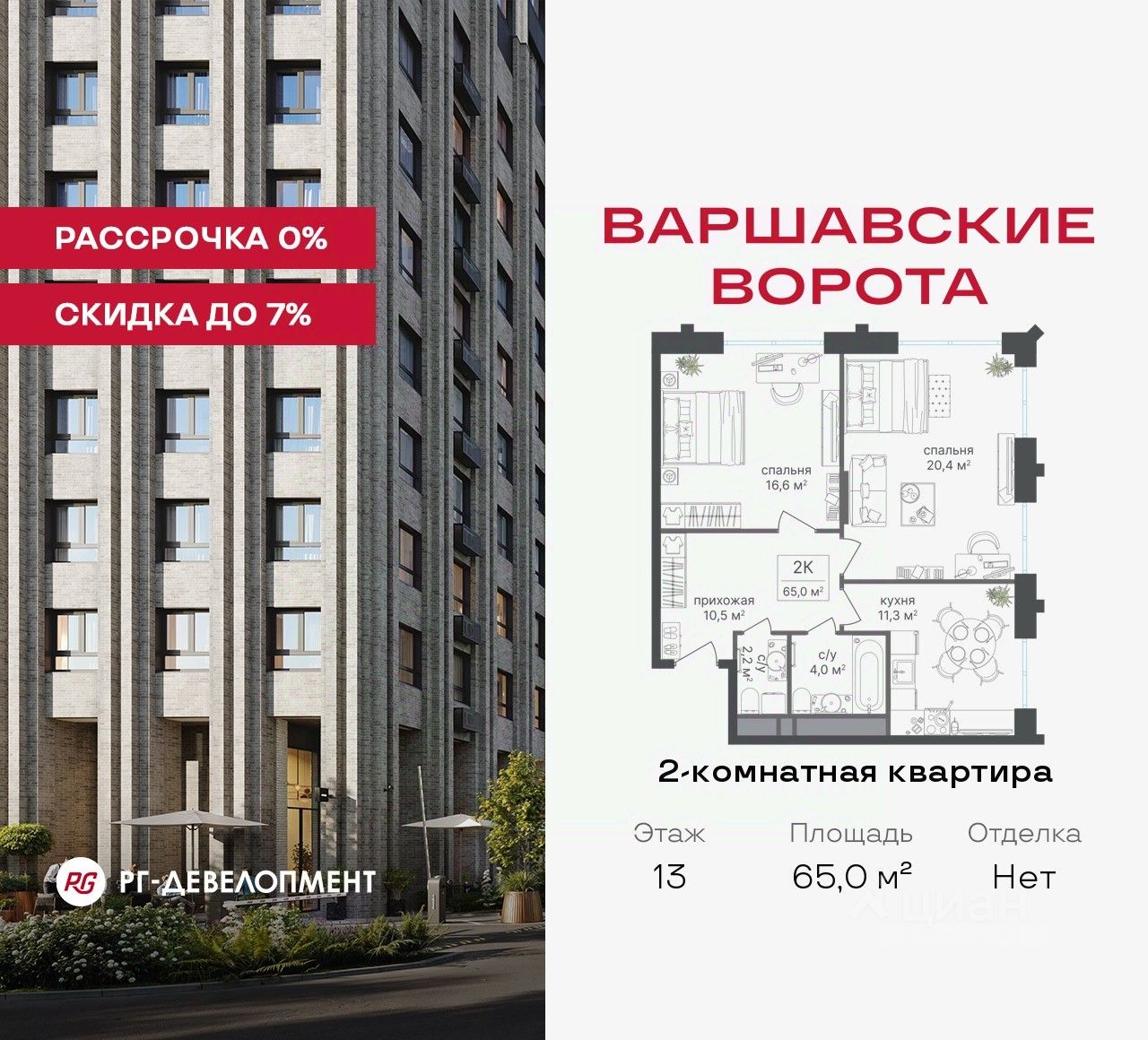 Продаётся 2-комнатная квартира 65,0 кв.м. в МФК "Варшавские ворота" на 13-м этаже 30 этажного дома. МФК "Варшавские ворота" — это точка баланса между природой и городом, стилем и функциональностью, жизнью сегодня и устойчивым будущим.
