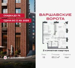 Продаётся 2-комнатная квартира 65.0 кв.м. в МФК "Варшавские ворота" на 18-м этаже 30 этажного дома. МФК "Варшавские ворота" — это точка баланса между природой и городом, стилем и функциональностью, жизнью сегодня и устойчивым будущим.