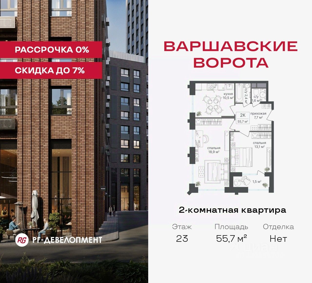 Продаётся 2-комнатная квартира 55,7 кв.м. в МФК "Варшавские ворота" на 23-м этаже 30 этажного дома. МФК "Варшавские ворота" — это точка баланса между природой и городом, стилем и функциональностью, жизнью сегодня и устойчивым будущим.