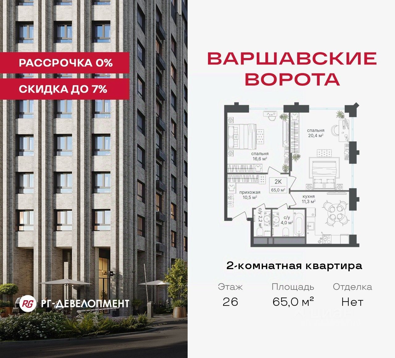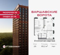 Продаётся 2-комнатная квартира 65,0 кв.м. в МФК "Варшавские ворота" на 26-м этаже 30 этажного дома. МФК "Варшавские ворота" — это точка баланса между природой и городом, стилем и функциональностью, жизнью сегодня и устойчивым будущим.