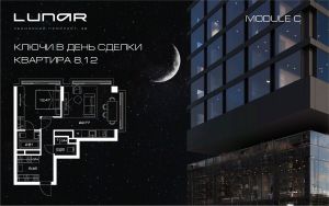 Квартира с 1-ой спальней общей площадью 50 кв. метров с отделкой white box на 8 этаже комплекса премиум-класса LUNAR:
