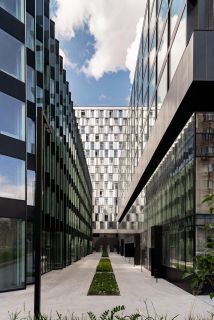 Корпус на 150 квартир с отделкой white box для тех, кто хочет настроить все элементы комфорта под свой образ жизни. Фасад здания выполнен из сочетания металлических панелей и стекла. Планировочные решения разработаны Jaime Beriestain Studio.