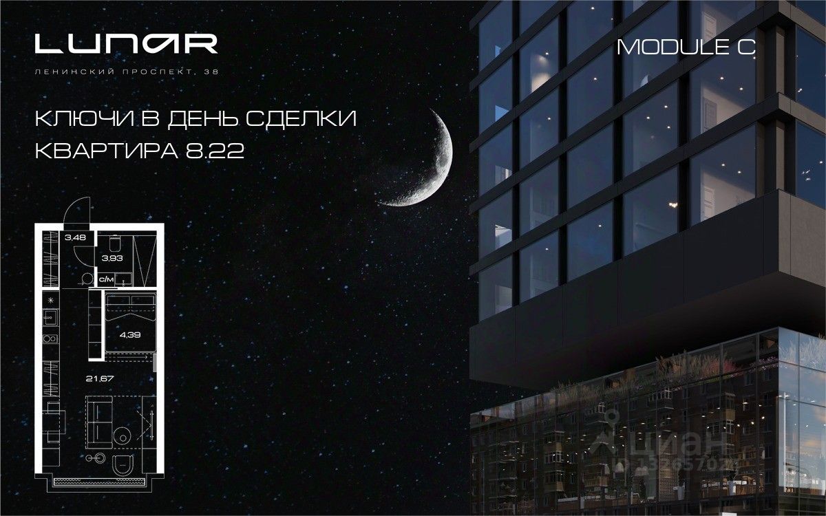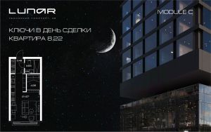 Студия общей площадью 33.6 кв. метров с отделкой white box на 8 этаже комплекса премиум-класса LUNAR: