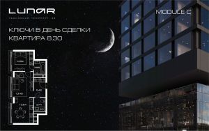 Квартира с 1-ой спальней общей площадью 52.3 кв. метров с отделкой white box на 8 этаже комплекса премиум-класса LUNAR: