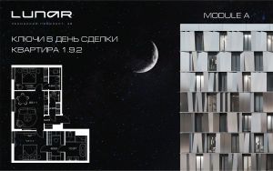 Квартира с 2-мя спальнями общей площадью 85.1 кв. метров с отделкой white box на 9 этаже комплекса премиум-класса LUNAR: