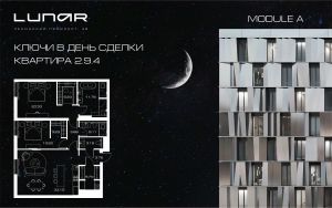 Квартира с 2-мя спальнями общей площадью 110.4 кв. метров с отделкой white box на 9 этаже комплекса премиум-класса LUNAR: