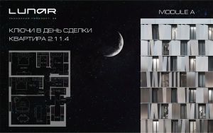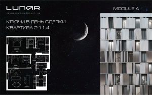 Квартира с 2-мя спальнями общей площадью 109.6 кв. метров с отделкой white box на 11 этаже комплекса премиум-класса LUNAR: