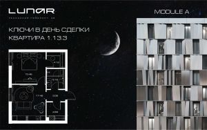 Квартира с 1-ой спальней общей площадью 51 кв. метров с отделкой white box на 13 этаже комплекса премиум-класса LUNAR: