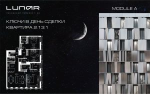 Квартира с 3-мя спальнями общей площадью 142.8 кв. метров с отделкой white box на 13 этаже комплекса премиум-класса LUNAR: