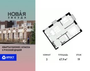 Продаётся 3-к квартира 47.9 кв.м. на 19-м этаже 21 этажного дома, корпус 1 - Резиденция "Вологда". Без отделки.